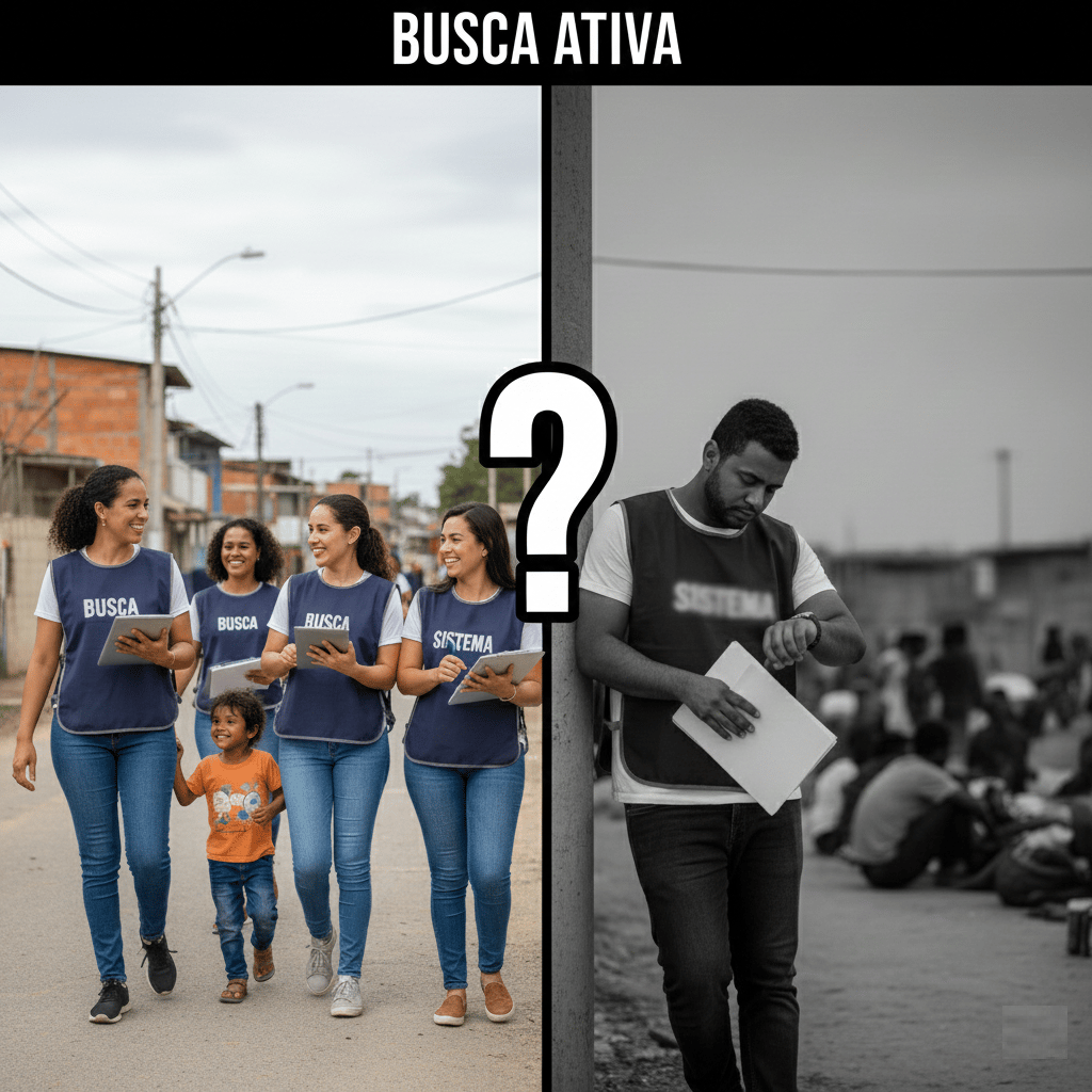 O termo "Busca Ativa" é onipresente no jargão das políticas sociais. Refere-se à estratégia do Estado (federal, estadual, municipal) de localizar, incluir no Cadastro Único e conectar as famílias em extrema pobreza aos serviços e benefícios da rede de proteção social – do Bolsa Família e BPC ao acesso à saúde, educação e assistência social.